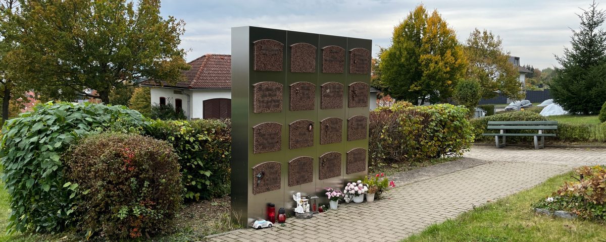 - Bei dieser Grabart handelt es sich um eine Urnenbeisetzung in einer pflegefreien Urnenkammer oder Urnenwand.